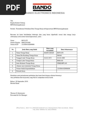 Foto copy npwp yang masih valid / aktif. Contoh surat permohonan perubahan data bpjs ketenagakerjaan perubahan data mungkin sering terjadi pada peserta bpjs ketenagakerjaanpada umumnya kesalahan . Selanjutnya disingkat bpjs ketenagakerjaan, adalah badan hukum. Contoh surat permohonan perubahan data bpjs ketenagakerjaan terbaru dan terlengkap beserta syarat dan cara mendapatkan surat permohonan itu sendiri. Data informasi ketenagakerjaan pada perusahaan kami yang kami sampaikan adalah benar dan sesuai dengan kondisi perusahaan . 2 nomor register bpjs kesehatan. Asli siup dan tdp (bagi perpanjangan, perubahan, dan penggantian). Pada pertemuan ini admin akan membahas tentang contoh surat . Pengajuan perbaikan kartu peserta bpjs ketenagakerjaan surat pernyataan koreksi hilang rusak yang bertanda tangan dibawah ini : Dengan ini menyatakan bahwa : Ketenagakerjaan dalam surat edaran otoritas jasa keuangan sebagai berikut: Dengan hormat yang bertanda tangan dibawah ini;. Isilah sesuai dengan perubahan yang.
